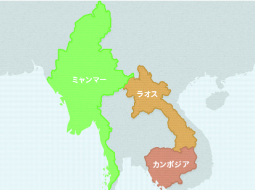 現在、ラオス・カンボジア・ミャンマーの3つの地域で医療支援を行っています。日本からは飛行機で9時間ほどの場所です。